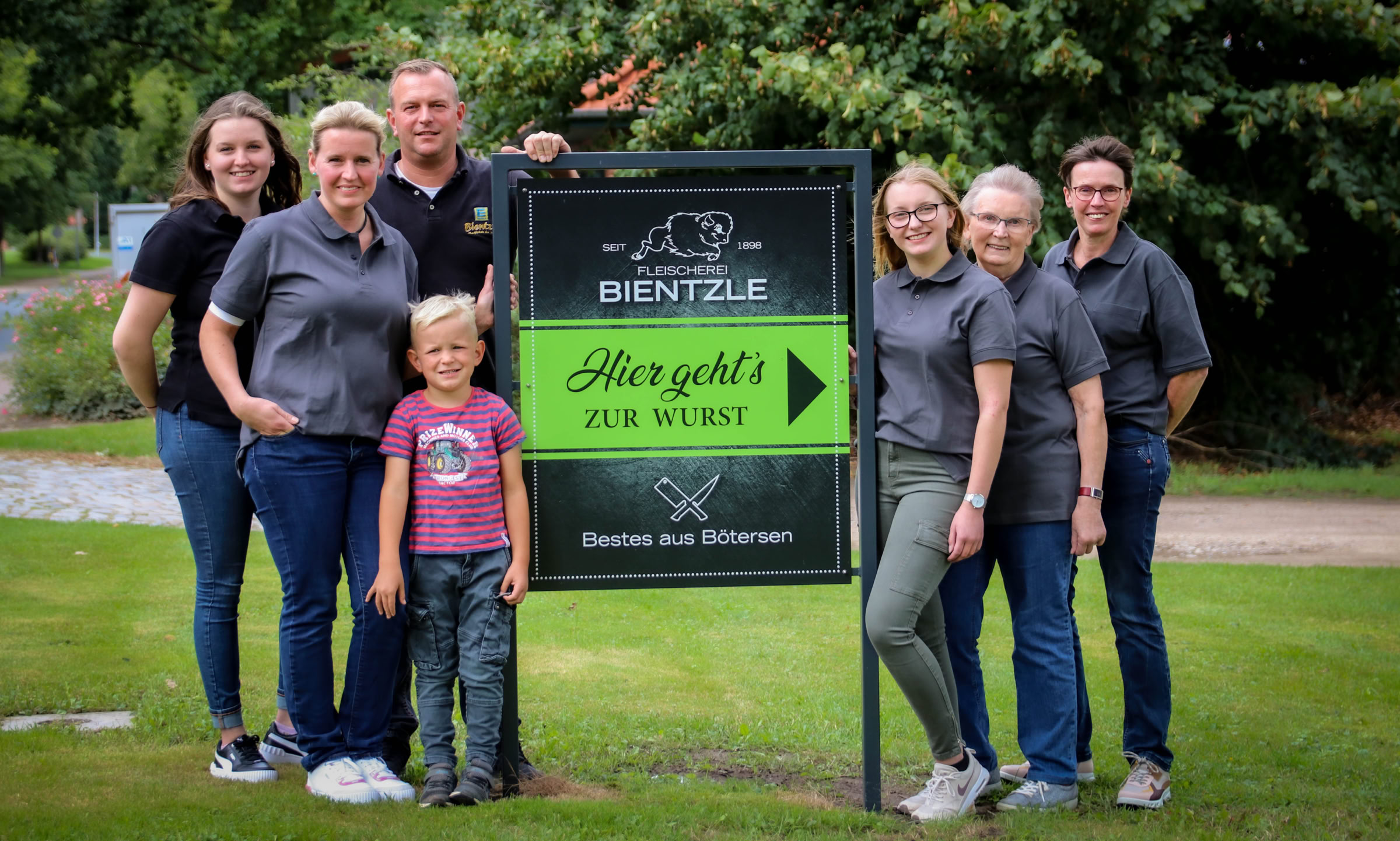 Und wir sind die Familie Bientzle aus Bötersen. (v. l. n. r) Anika, Carmen, Steffen, Jenke, Carina, Martha und Cordula.